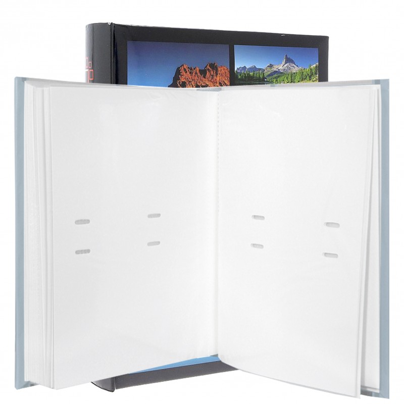 Фотоалбум с идеално пригодени 200 снимки. На една страница по две снимки. Този стилен албум е подходящ и за подарък пълен със снимки от специален повод. Разполага с модерен дизайн, корици с различни мотиви, с 200 джобчета здраво закрепени към основата на албума, с размер на снимките 10х15см и място за писане.