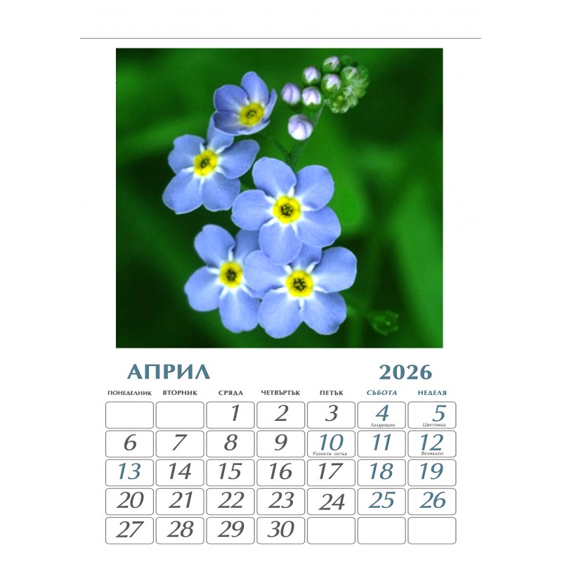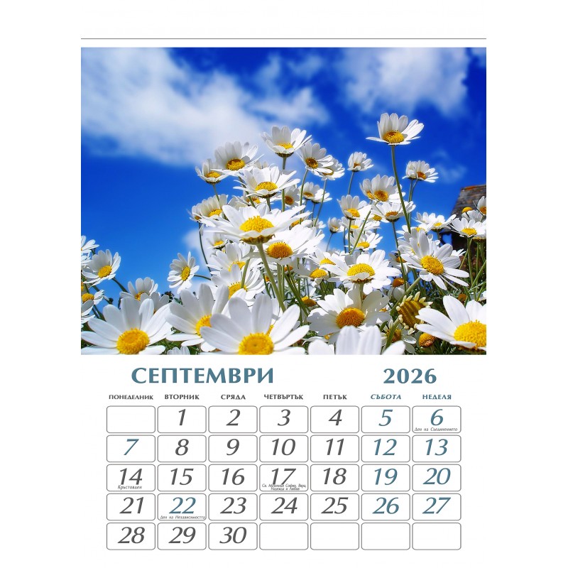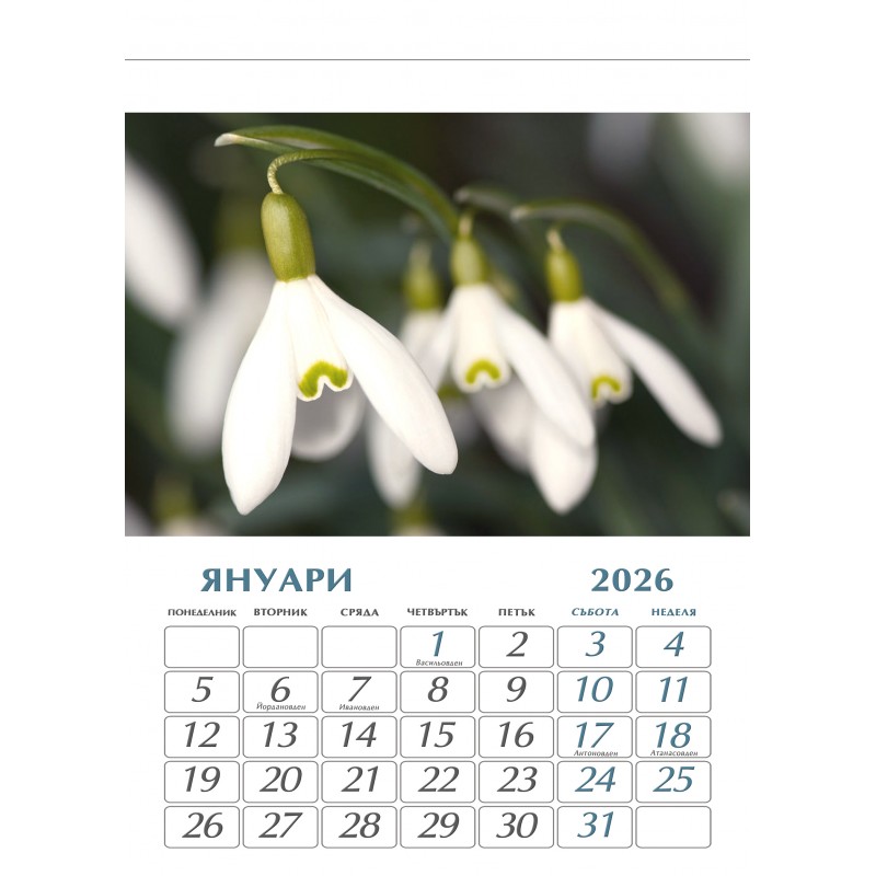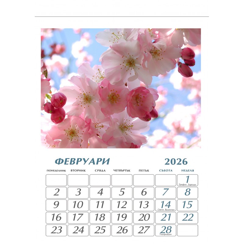 Настолен календар по готов дизайн формат 17х25 см с 13 страници.