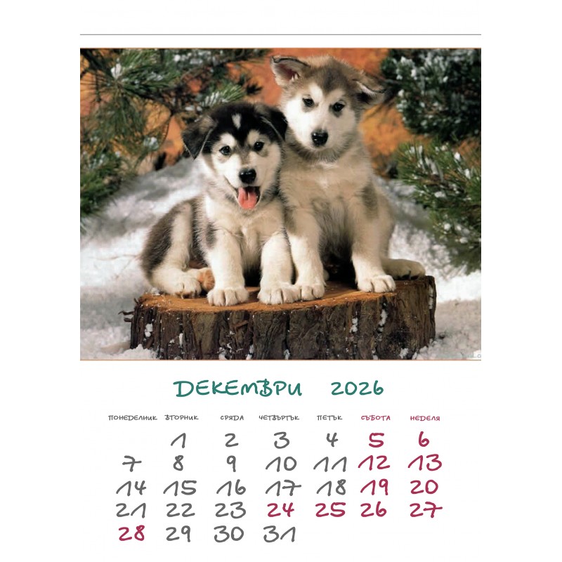 Настолен календар по готов дизайн формат 17х25 см с 13 страници.