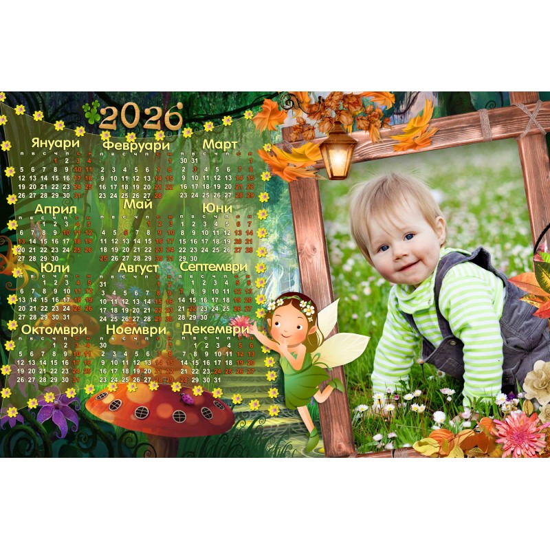 За своя еднолистен календар може да използвате готовите дизайни, в който трябва само да поставите вашата любима снимка. Календарите се изработват на фотохартия с формат 25х38 см.