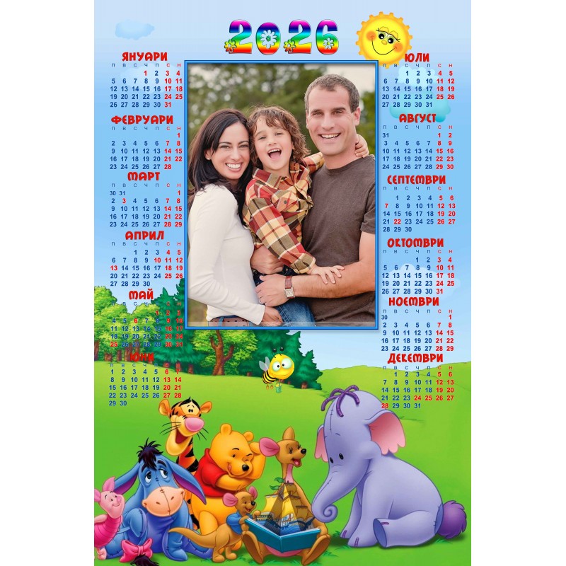 За своя еднолистен календар може да използвате готовите дизайни, в който трябва само да поставите вашата любима снимка. Календарите се изработват на фотохартия с формат 25х38 см.