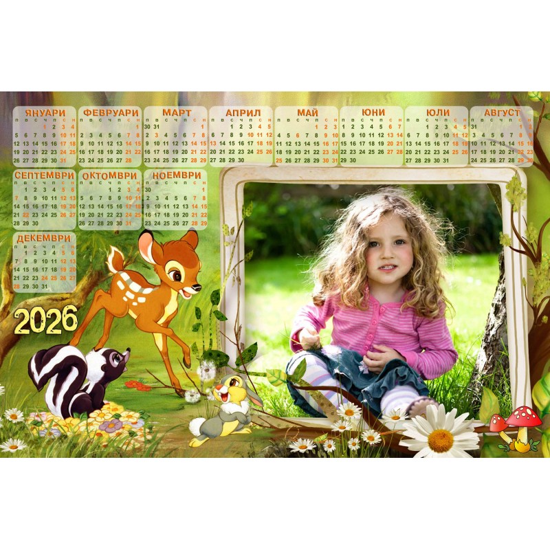 За своя еднолистен календар може да използвате готовите дизайни, в който трябва само да поставите вашата любима снимка. Календарите се изработват на фотохартия с формат 25х38 см.