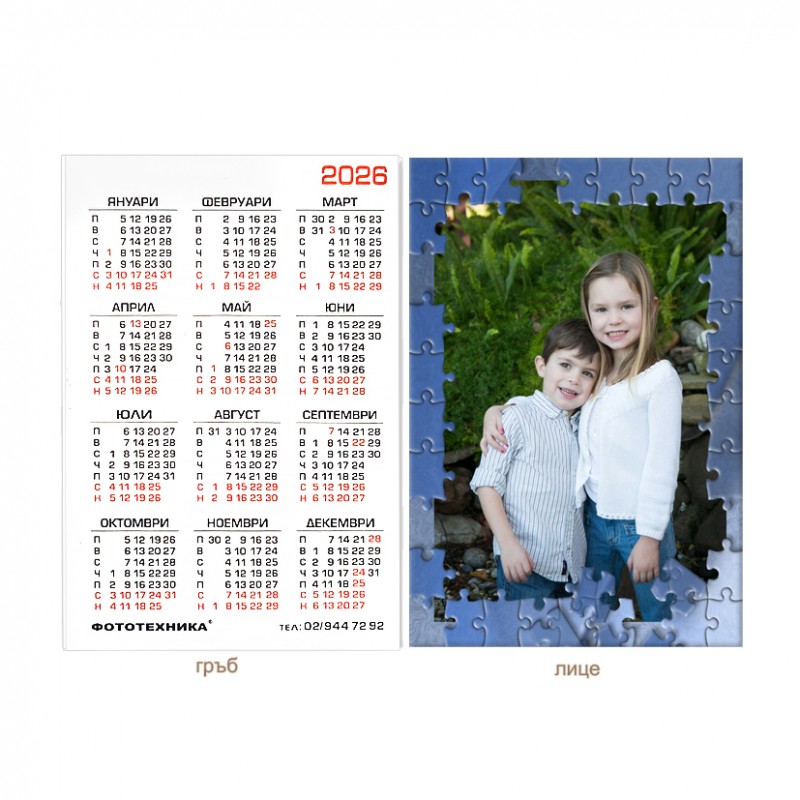 Календарче 6х9см с рамка "пъзел" ламинирано