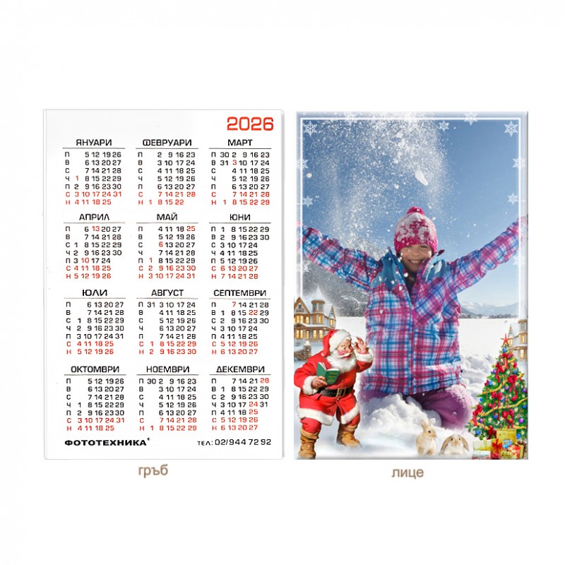 Календарче 6х9см с рамка "Дядо Коледа" ламинирано