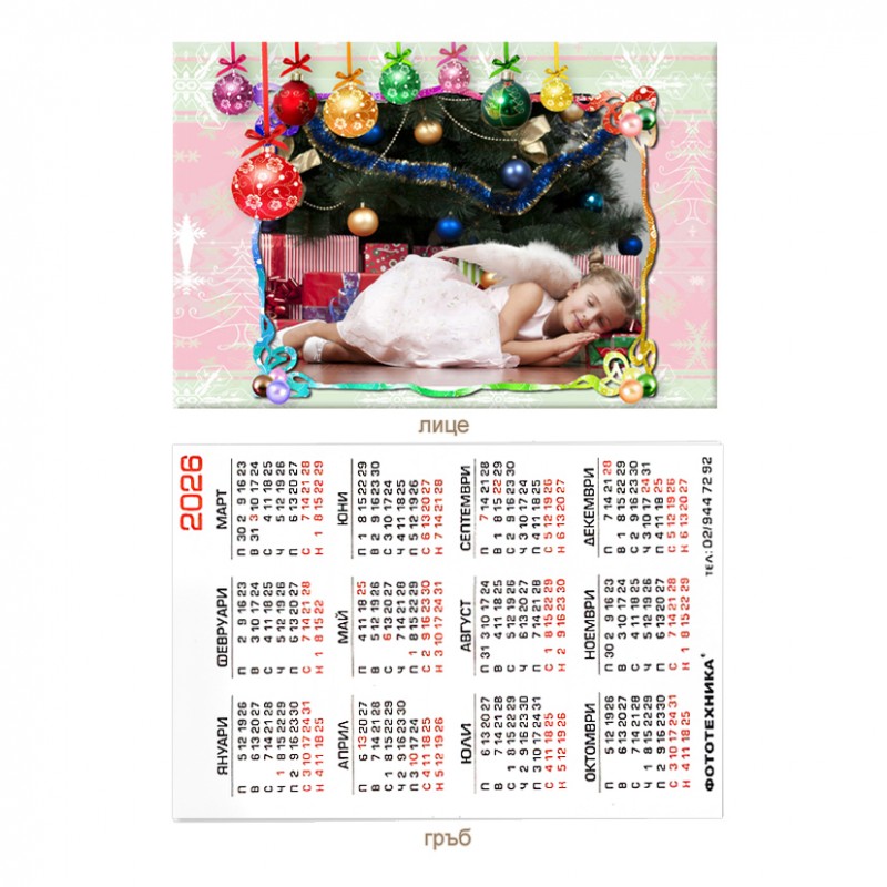 Календарче 6х9см с рамка "новогодишни топки хоризонтално" ламинирано