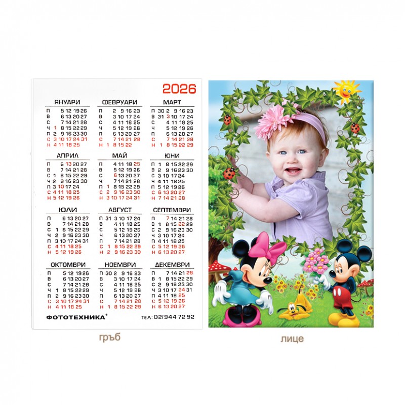 Календарче 6х9см с рамка "Мики Маус" ламинирано