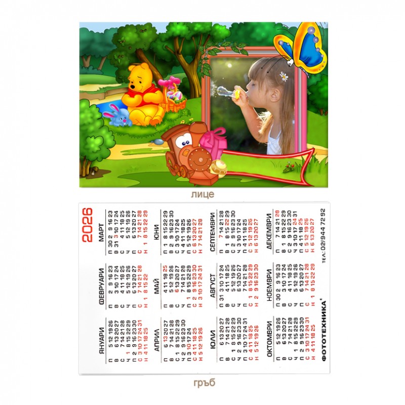 Календарче 6х9см с рамка "Мечо Пух" ламинирано