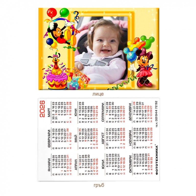 Календарче 6х9см с рамка "Мики и Мини" ламинирано