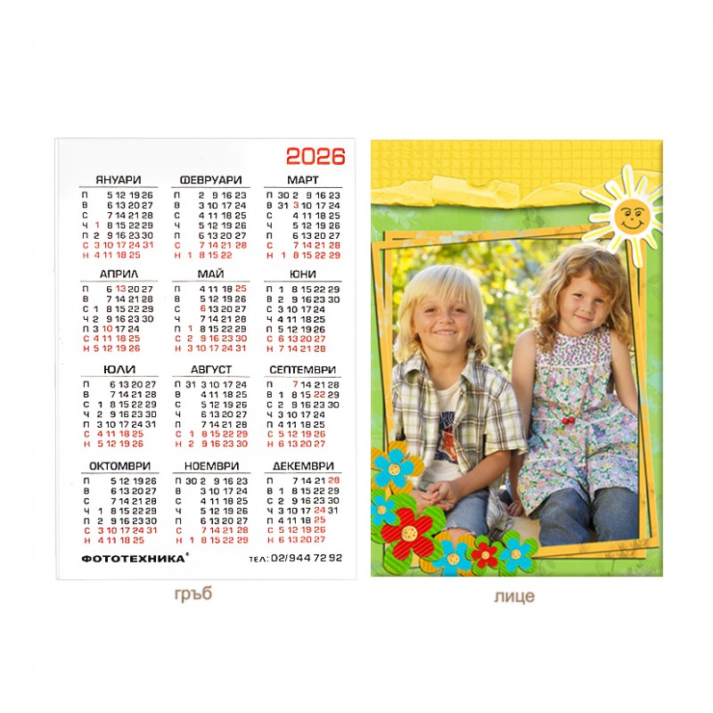 Календарче 6х9см с рамка "Слънце вертикално" ламинирано